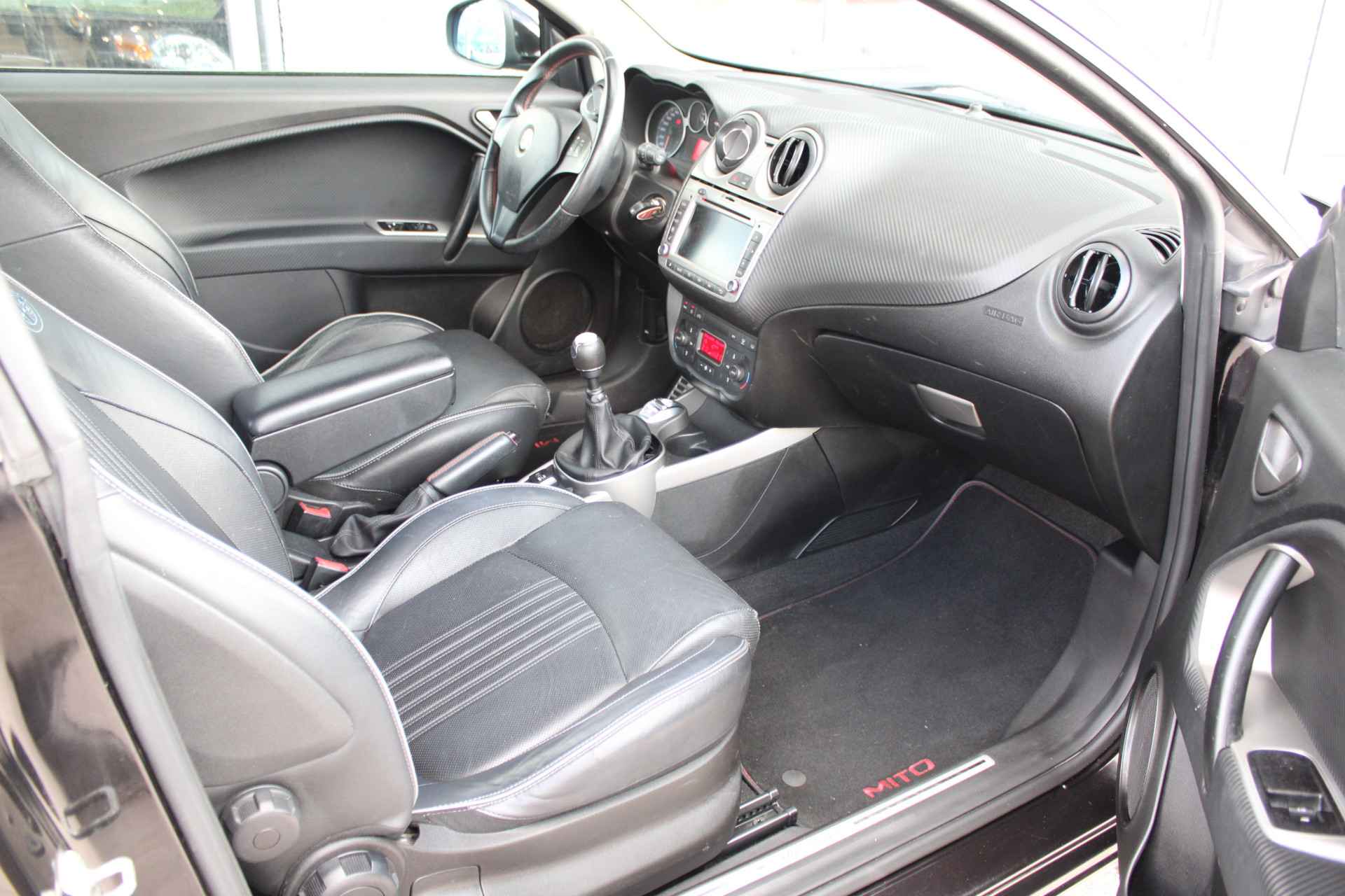 Bij het ontwerpen van de Alfa Romeo MiTo stonden uw comfort en uw veiligheid centraal. Met zijn benzinemotor van 86 Pk en handgeschakelde zesversnellingsbak is dit een prima auto voor nog vele kilometers. De auto is voorzien van leren bekleding - een fraaie en sfeerverhogende extra. Bij de zeer complete uitrusting van deze auto behoren ook 16 inch lichtmetalen velgen, neerklapbare achterbank, verstelbare lendensteunen en snelheidsafhankelijke stuurbekrachtiging.