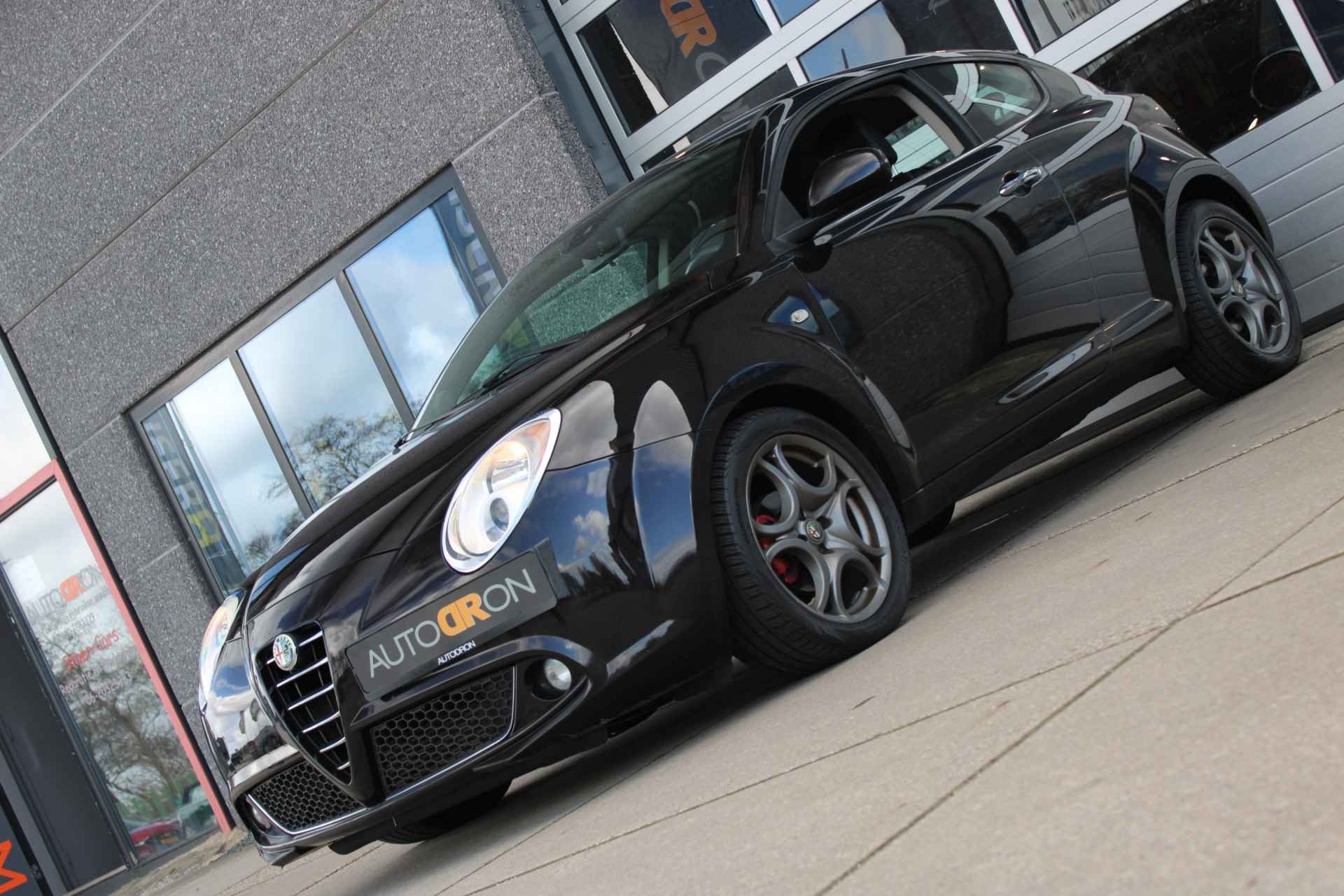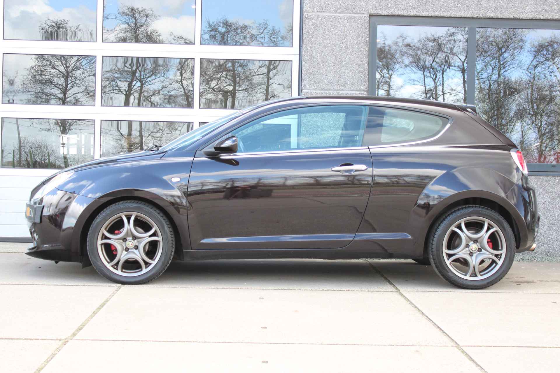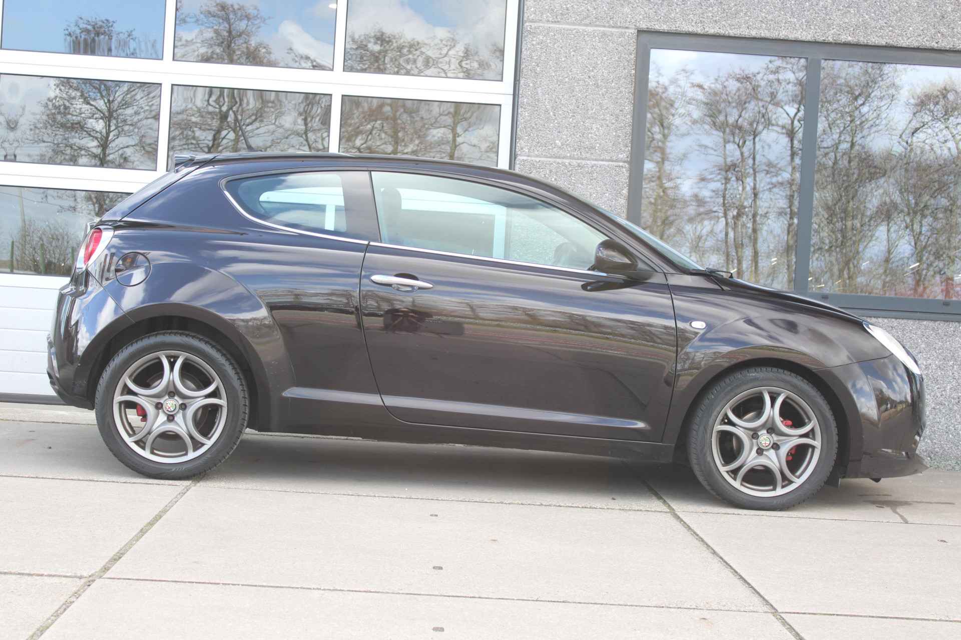 Stijlvolle Alfa Romeo Mito in de kleur Nero Etna , deze Zwart metallic geeft in de zon een prachtige Paarsachtige gloed!
