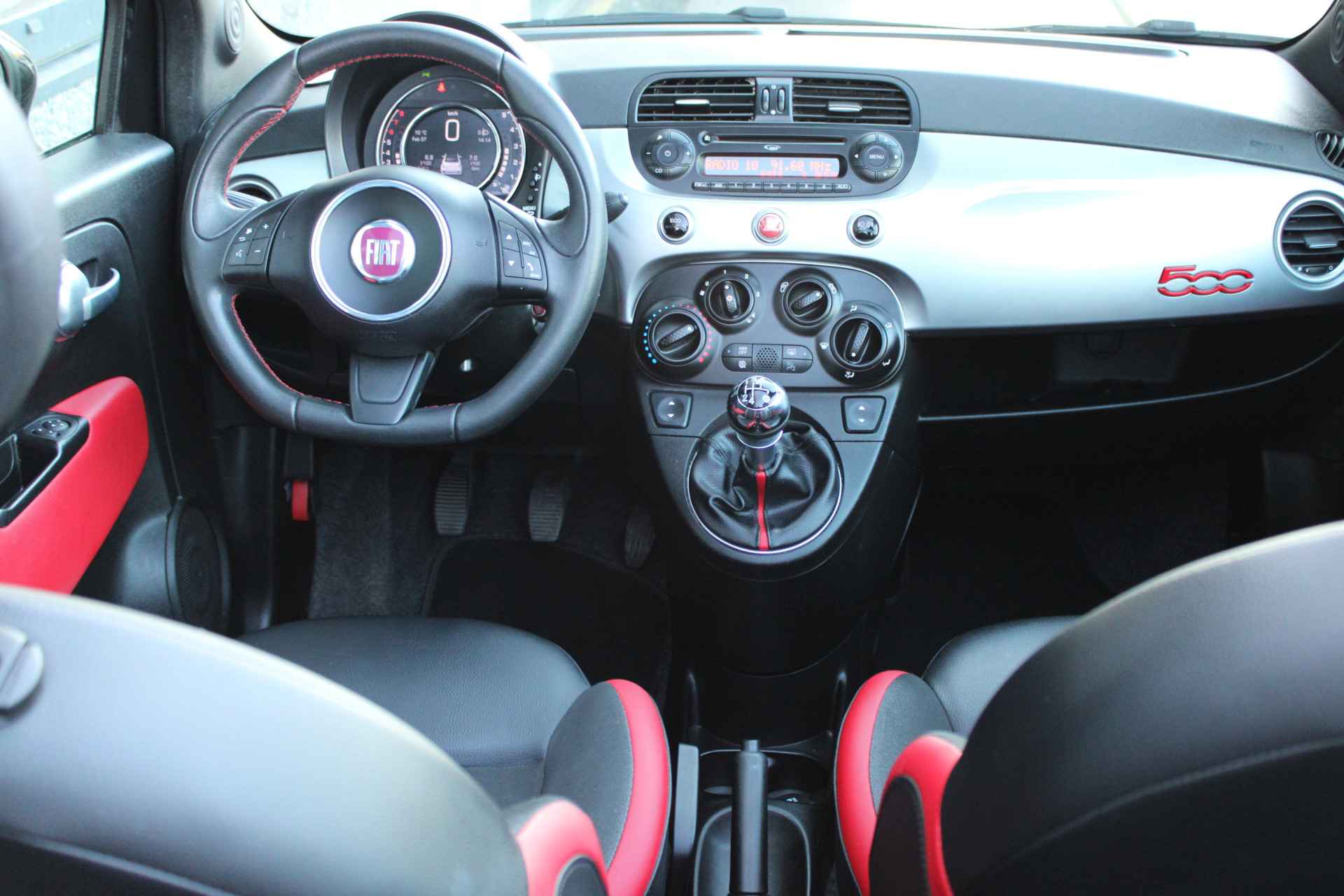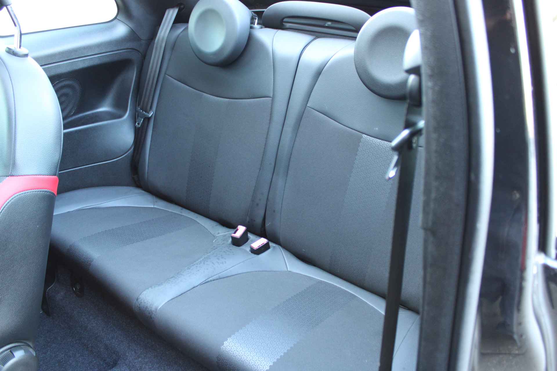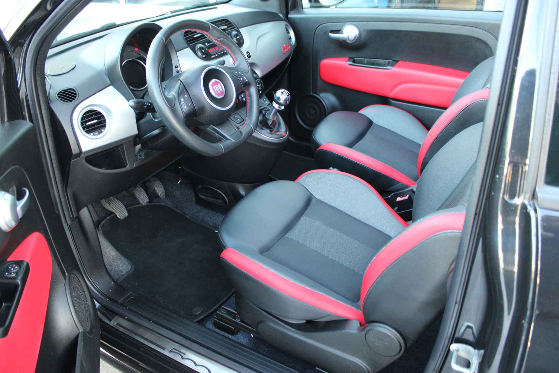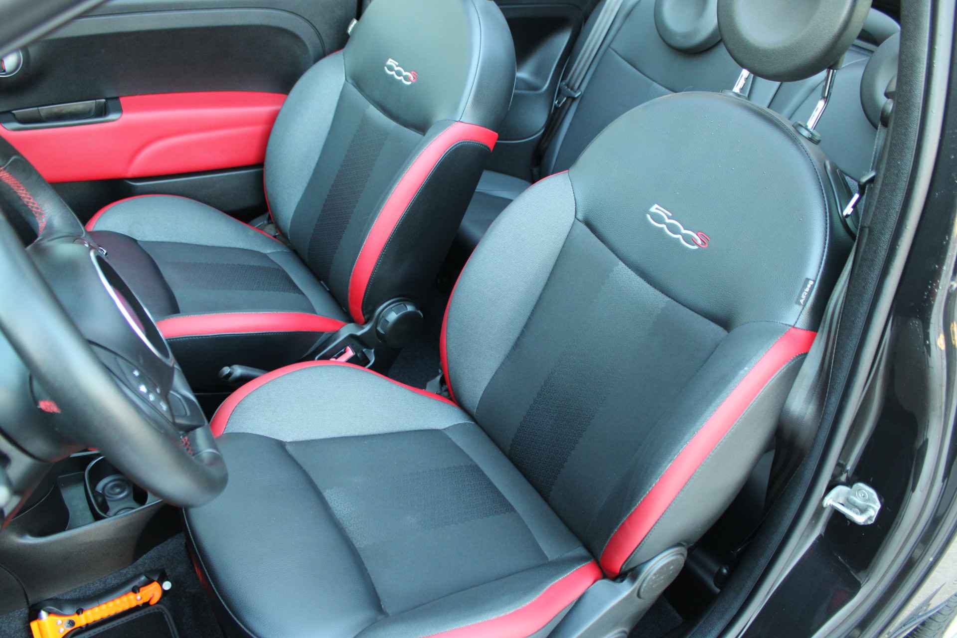 unieke combinatie deze Fiat 500S cabriolet! geïnspireerd op de Abarth uitvoering met o.a. de sportievere bumpers en het sport interieur en de vele rode details echt een eyecatcher.