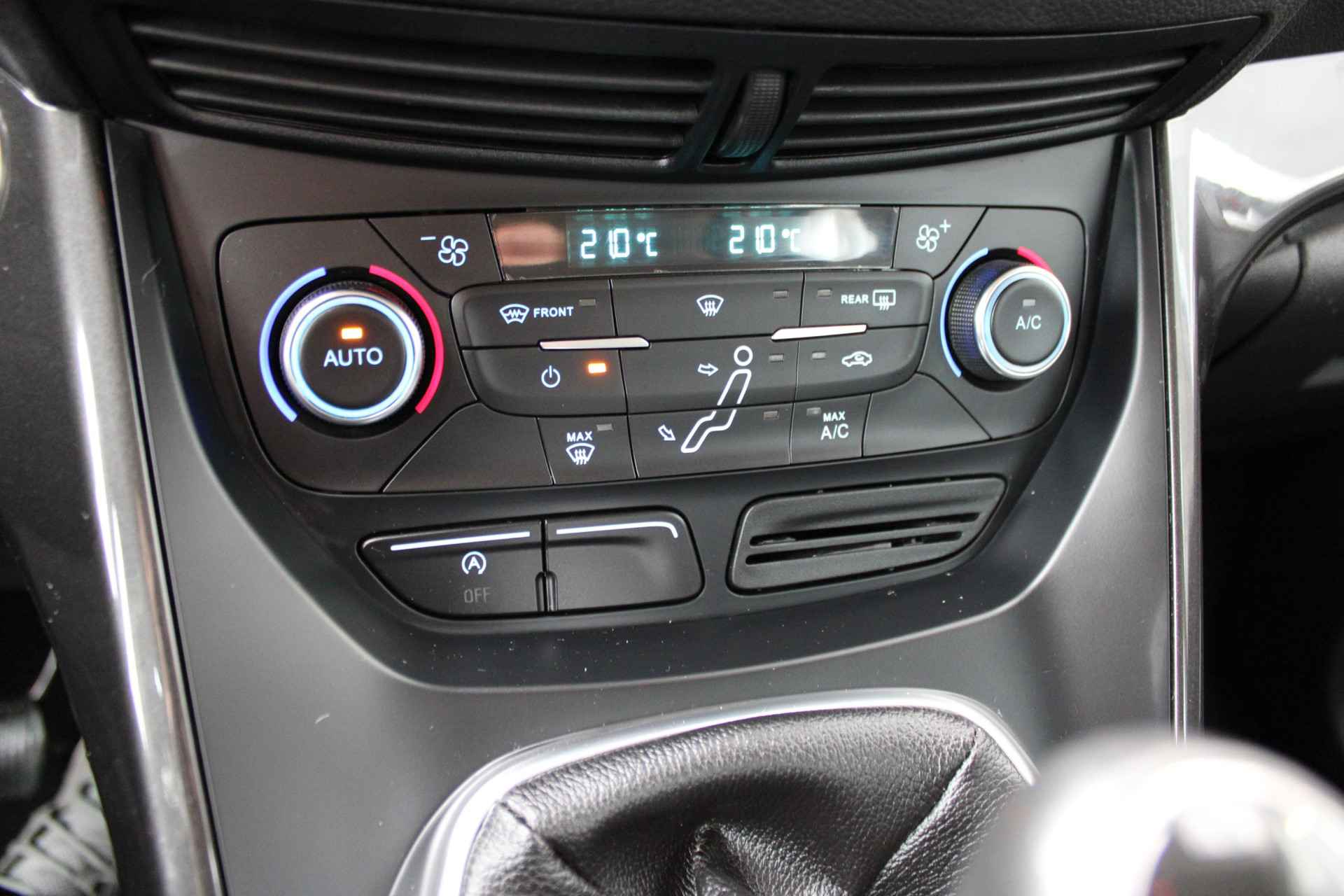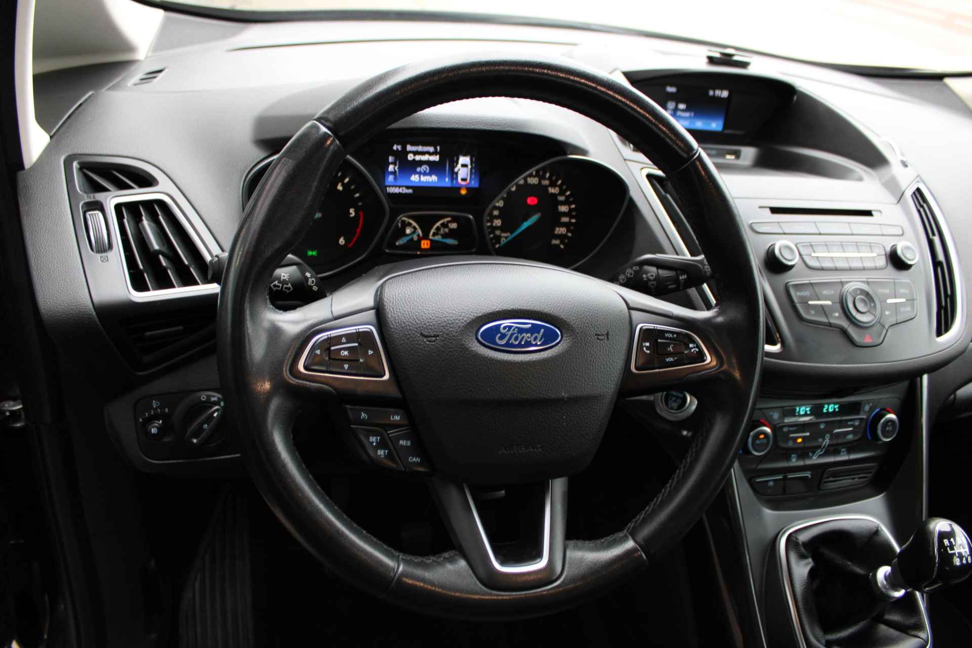 In een auto als deze kunt u niet zonder automatische airconditioning, zodat de temperatuur altijd goed is. Alle audioknoppen letterlijk onder handbereik: dat kan met de audiobediening op het stuur. Inparkeren en uitparkeren kost geen enkele moeite dankzij de parkeersensoren. Natuurlijk is een complete auto als deze ook voorzien van sensoren die de omgeving in de gaten houden. Deze Ford heeft niet alleen een automatisch inschakelbare verlichting aan boord, maar ook een regen- en lichtsensor. Met cruise control rijdt u rustiger en meer ontspannen, en bovendien zuiniger. Met automatisch dimmende binnenspiegel, lederen stuur, isofix-aansluiting, centrale deurvergrendeling met afstandsbediening, boordcomputer en lederen versnellingspook is deze auto helemaal compleet.