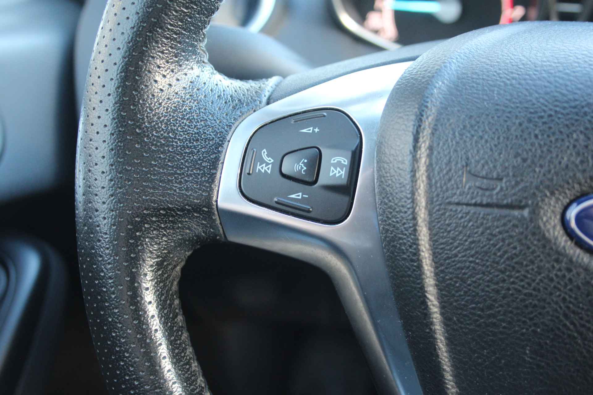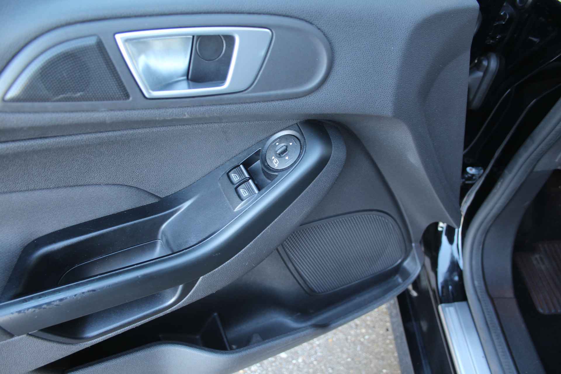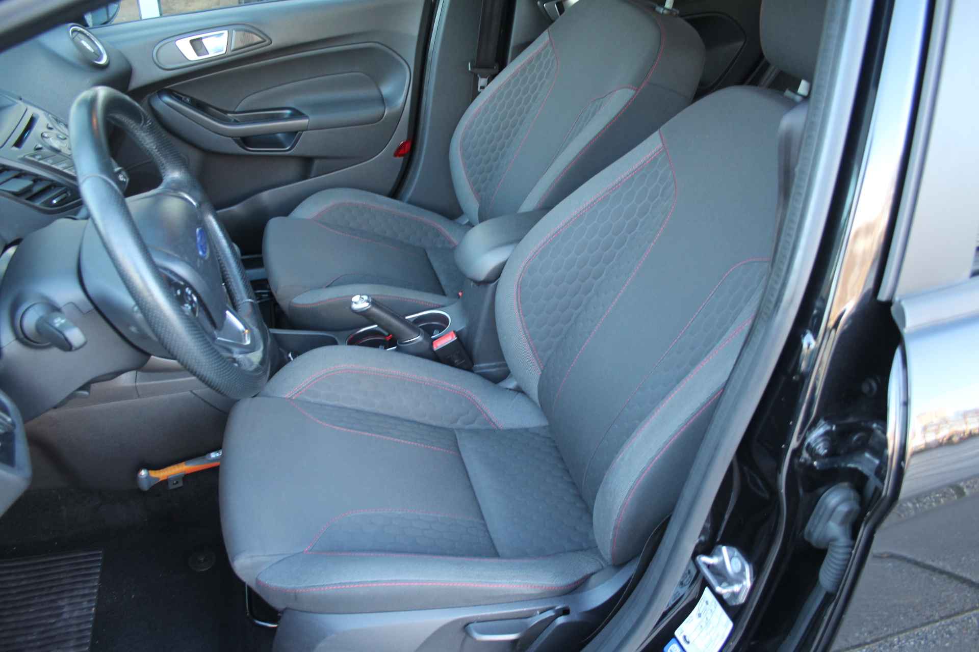 Compact van buiten. Ruim van binnen. Deze Ford Fiesta verpakt de eigenschappen van een grote auto in een handzame hatchback. De aandrijving van deze Ford wordt verzorgd door een driecilinder benzinemotor en een handgeschakelde vijfversnellingsbak. De sportstoelen zien er niet alleen prachtig uit, maar zijn ook functioneel, zoals u kilometer na kilometer zult merken. De uitmonstering van deze auto wordt gecompleteerd door onder meer 16 inch lichtmetalen velgen, verwarmbare voorruit, sportonderstel, LED-dagrijverlichting, zwarte hemelbekleding en donker getint glas achter.