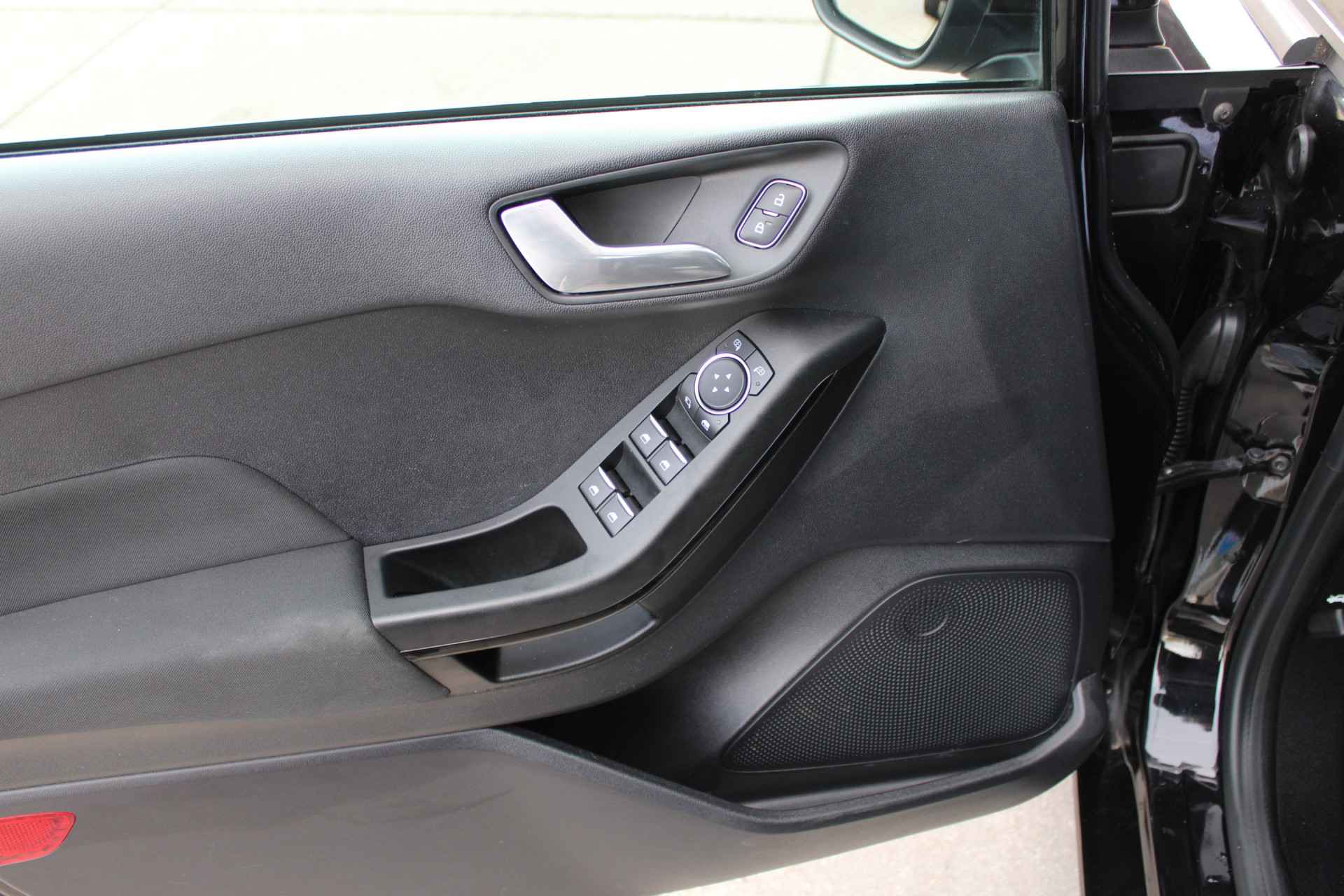 De nieuwste veiligheidssystemen komen in deze Ford Fiesta samen. Het Lane-keeping systeem let constant op en waarschuwt of corrigeert als u onoplettend over de lijnen van de rijstrook gaat. In een noodsituatie telt elke meter. Het brake assist systeem van deze auto zorgt ervoor dat uw remweg korter wordt. Ook helpen het hill hold functie en bandenspanningcontrolesysteem, uw rit tot een veilige rit te maken.