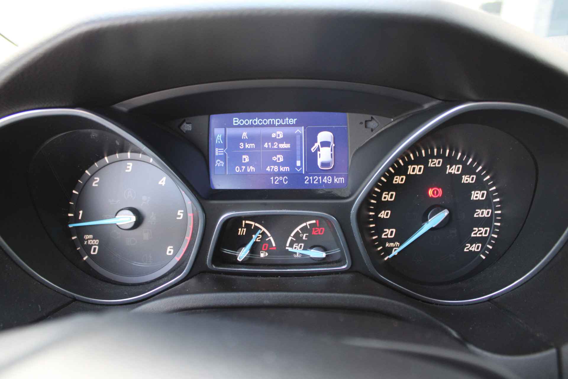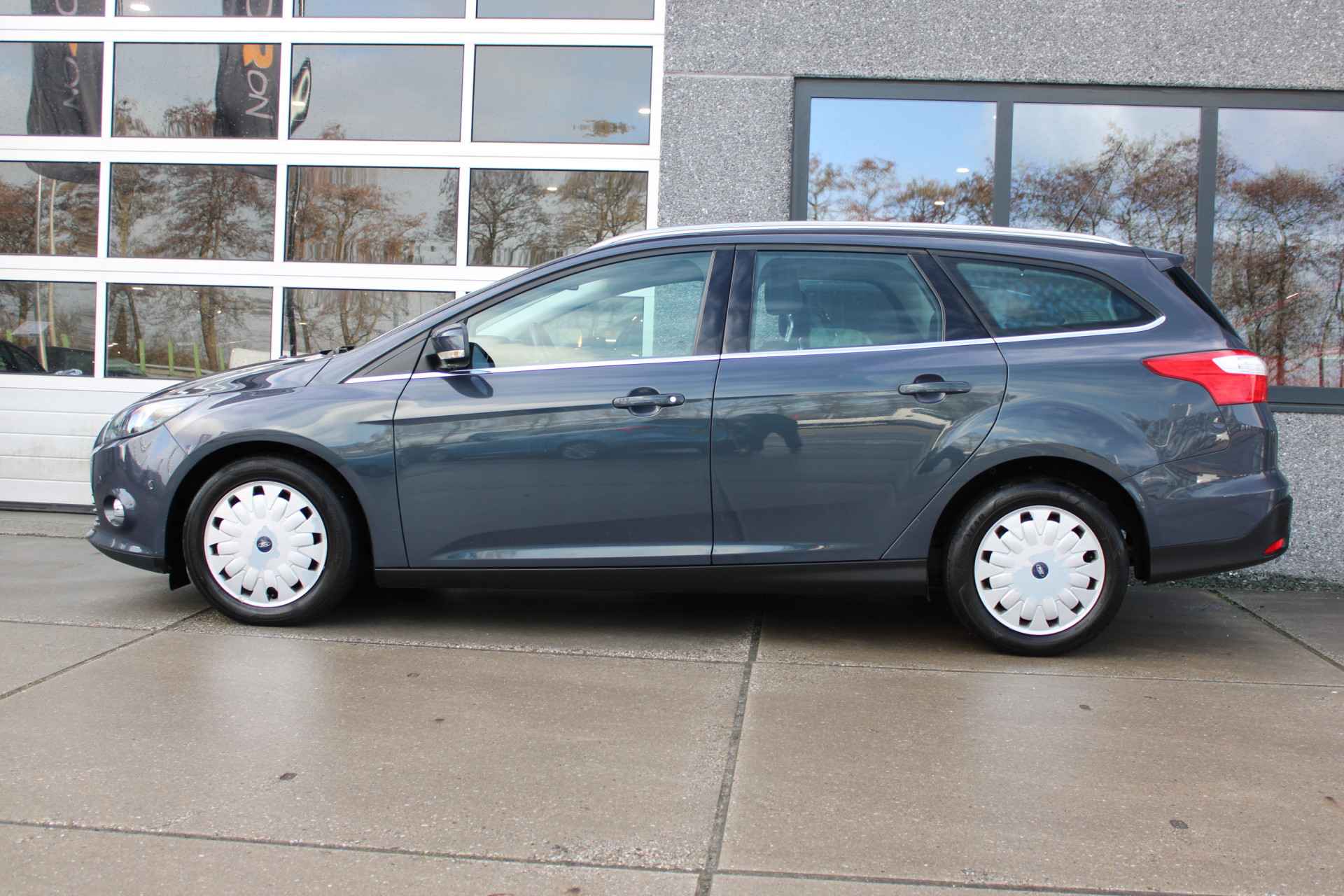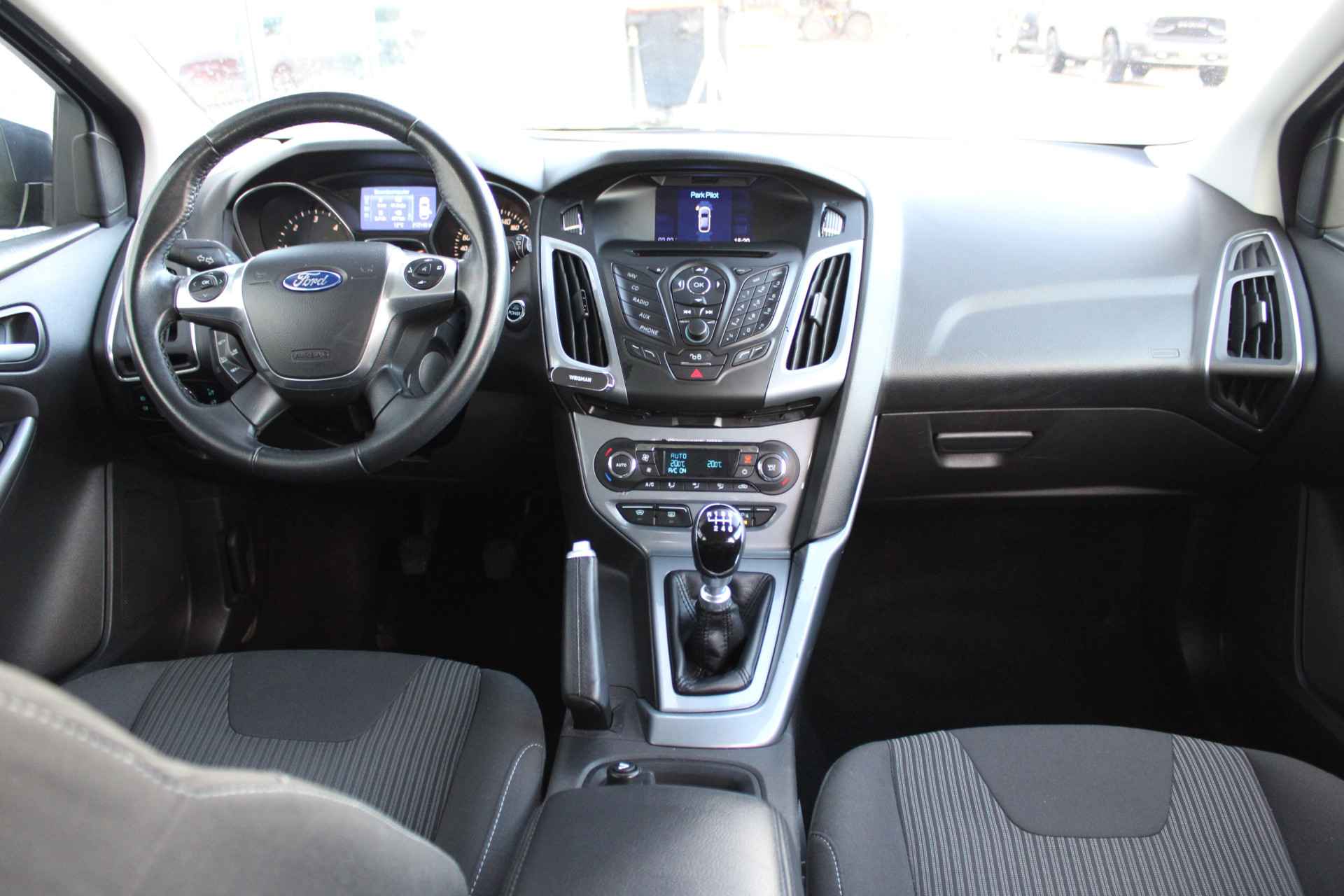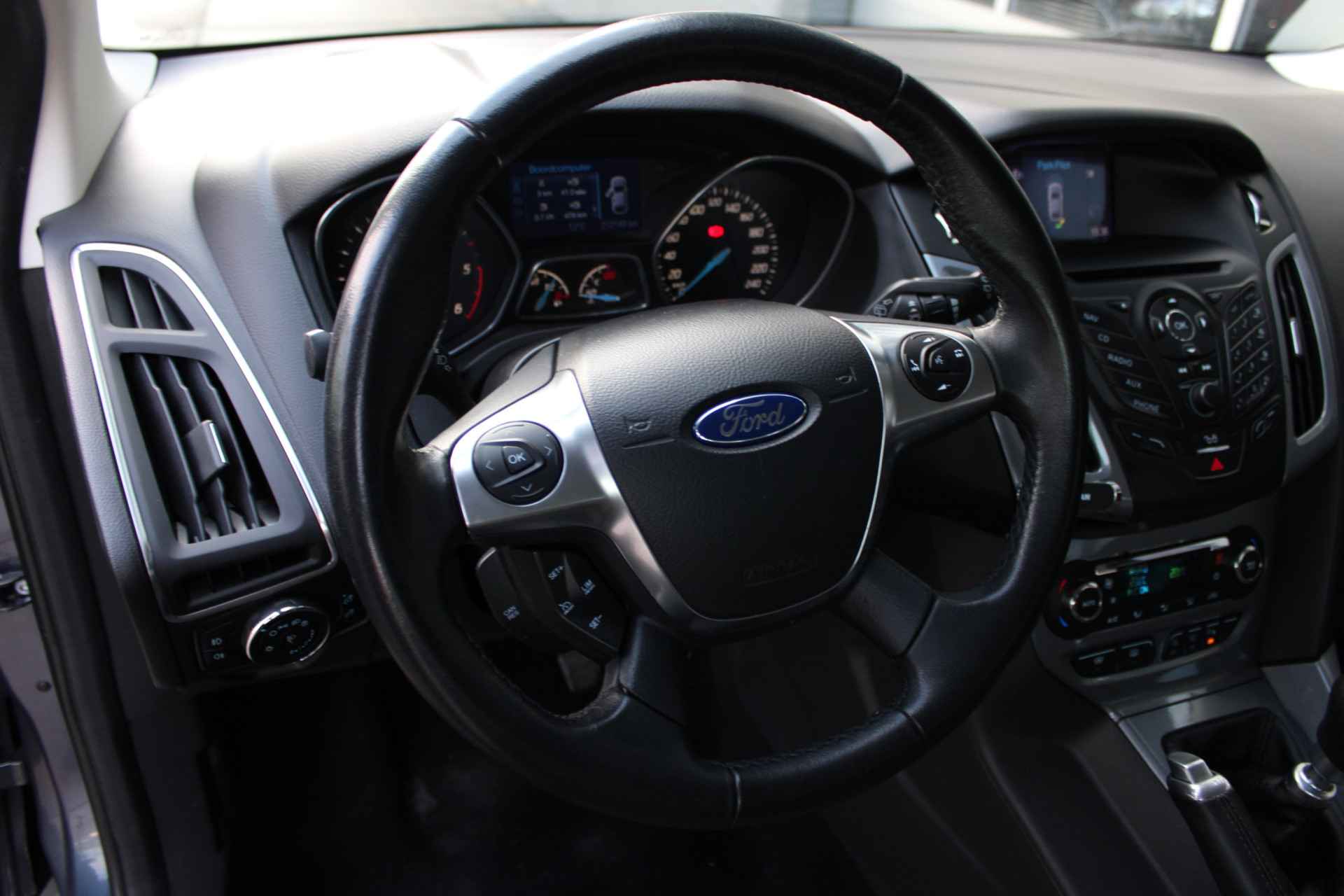 De automatische airconditioning zorgt voor een prettige binnentemperatuur. Parkeerplekken worden er niet ruimer op. Maar met de aanwezige parkeersensoren krijgt u deze Ford Focus Wagon zonder problemen op z'n plaats. De elektronische systemen in deze Ford helpen u actief om comfortabeler te rijden. Een automatisch inschakelbare verlichting en een regensensor houden de omstandigheden onderweg in de gaten. Lekker koersen op een constante snelheid: daarvoor zorgt de cruise control. U bent in deze Ford ook voorzien van full map navigatiesysteem, automatisch dimmende binnenspiegel, lederen stuur, centrale deurvergrendeling met afstandsbediening, boordcomputer en lederen versnellingspook.