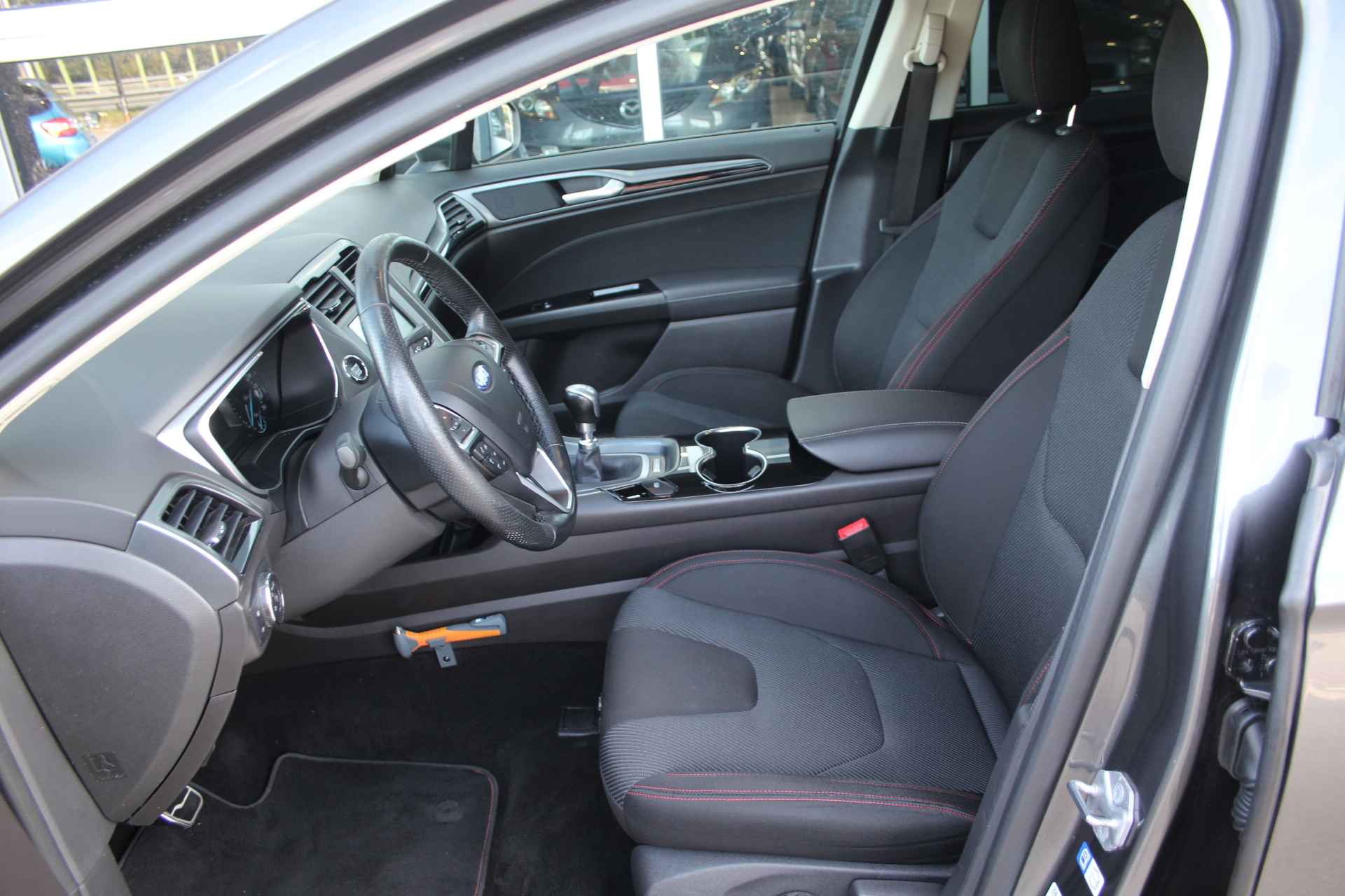 Zoals u mag verwachten van deze Ford Mondeo is hij uitgerust met een reeks aan actieve veiligheidssystemen. De Brake Assist geeft een maximale boost aan het remsysteem in een noodsituatie. Zo verkort u de remweg en verkleint u de kans op ongelukken. Met voorzieningen als hill hold functie en bandenspanningcontrolesysteem, bent u altijd veilig onderweg.