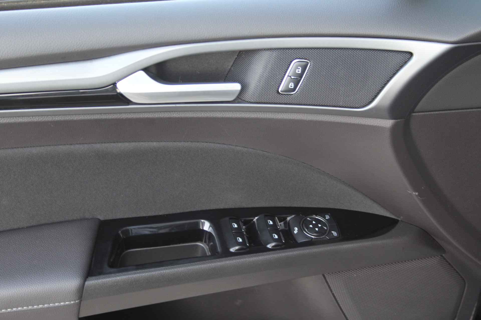 Spraakbediening verhoogt de veiligheid en het gebruiksgemak. De auto luistert naar uw instructies en volgt ze op. Beste route, verwachte aankomsttijd: uw eigen full map navigatiesysteem vertelt u alles! Nooit meer te warm of te koud. De automatische airconditioning zorgt altijd voor de temperatuur die u kiest. Voor een storingvrije radio-ontvangst zorgt de ingebouwde DAB-ontvanger. Met de aanwezige parkeersensoren weet u altijd zeker of het past. Deze Ford is voorzien van cruise control, automatisch dimmende binnenspiegel, lederen stuur, isofix-aansluiting, centrale deurvergrendeling met afstandsbediening en toerenteller.