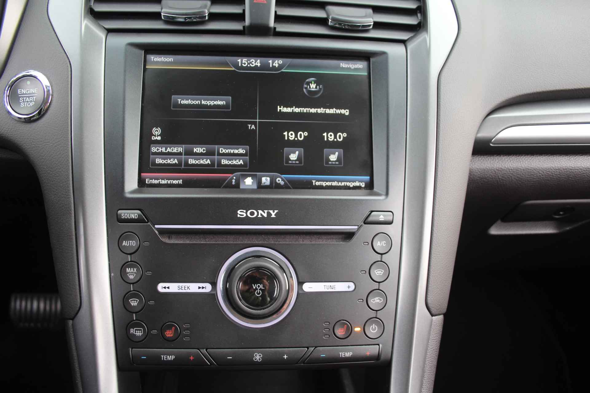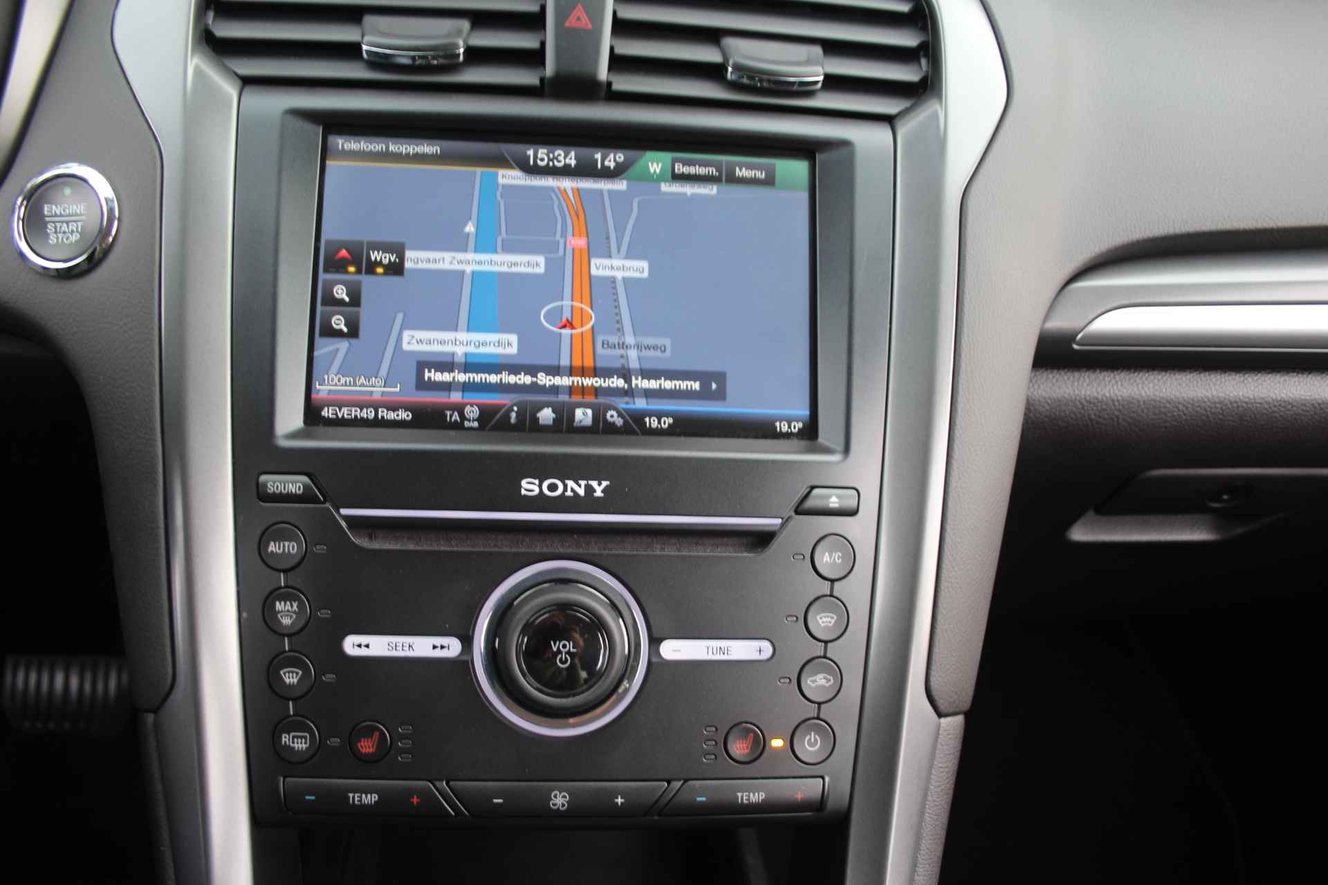 Niets achter deze auto blijft verborgen door de achteruitrijcamera. Een veilig gevoel! Soms wil je goed geluid kunnen voelen! Het high performance audiosysteem bedient u op uw wenken. De automatische airconditioning zorgt voor een prettige binnentemperatuur. Natuurlijk is een complete auto als deze ook voorzien van sensoren die de omgeving in de gaten houden. Deze Ford heeft niet alleen een automatisch inschakelbare verlichting aan boord, maar ook een regensensor. Met de cruise control komt u bijna nog fitter aan dan u vertrekt. Wat u ook in deze auto kunt vinden zijn navigatiesysteem, lederen sportstuur, DAB ontvangst, keyless entry, automatisch dimmende binnenspiegel en isofix-aansluiting.