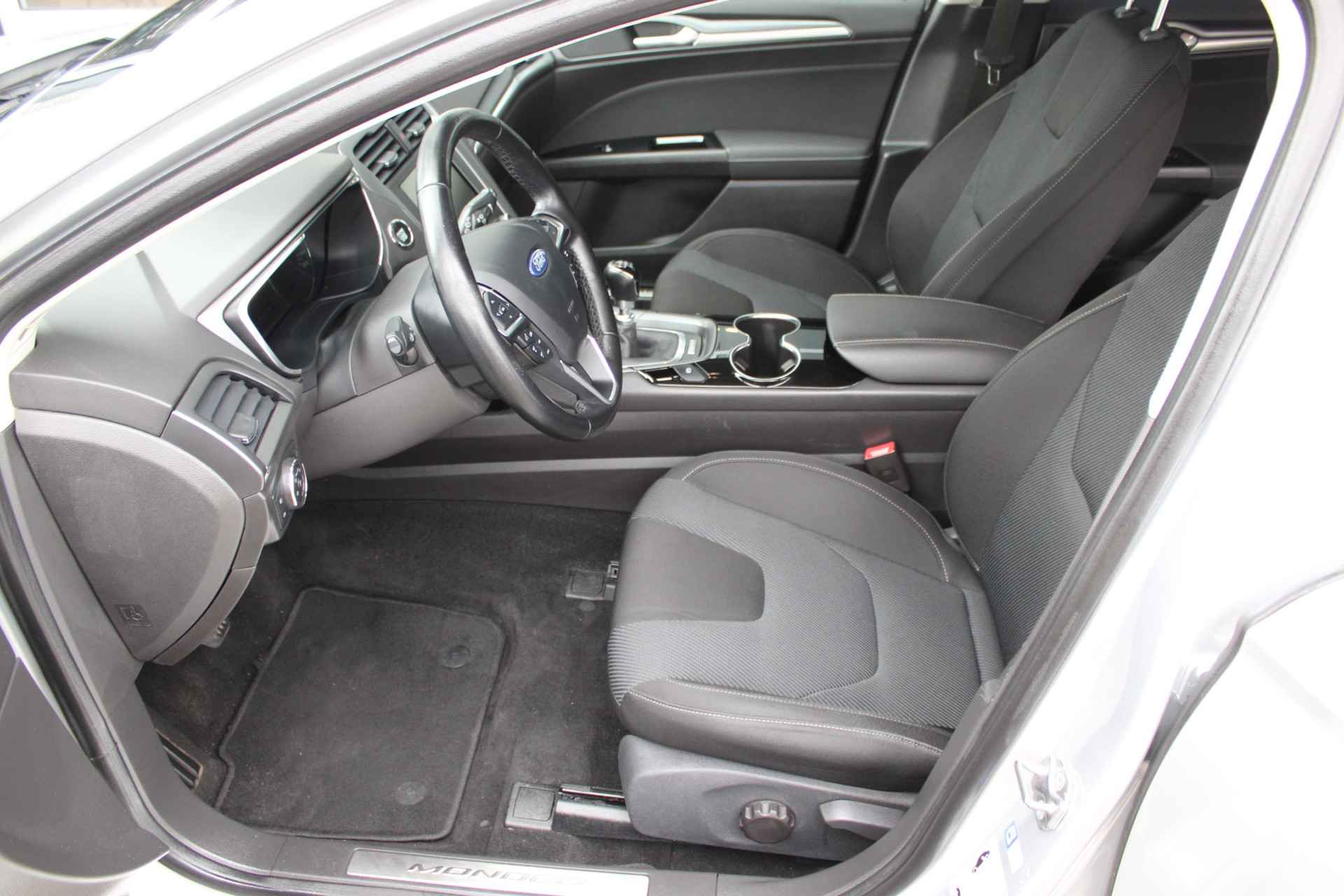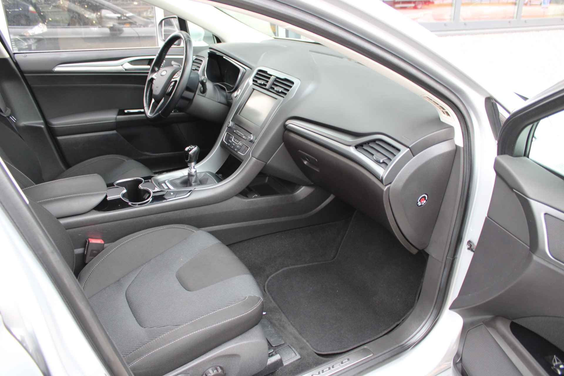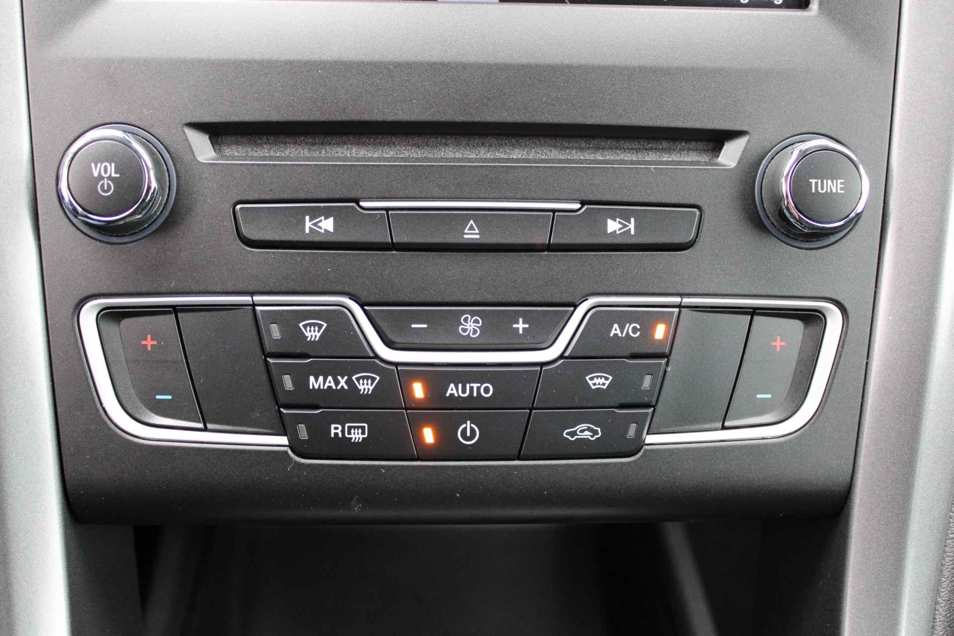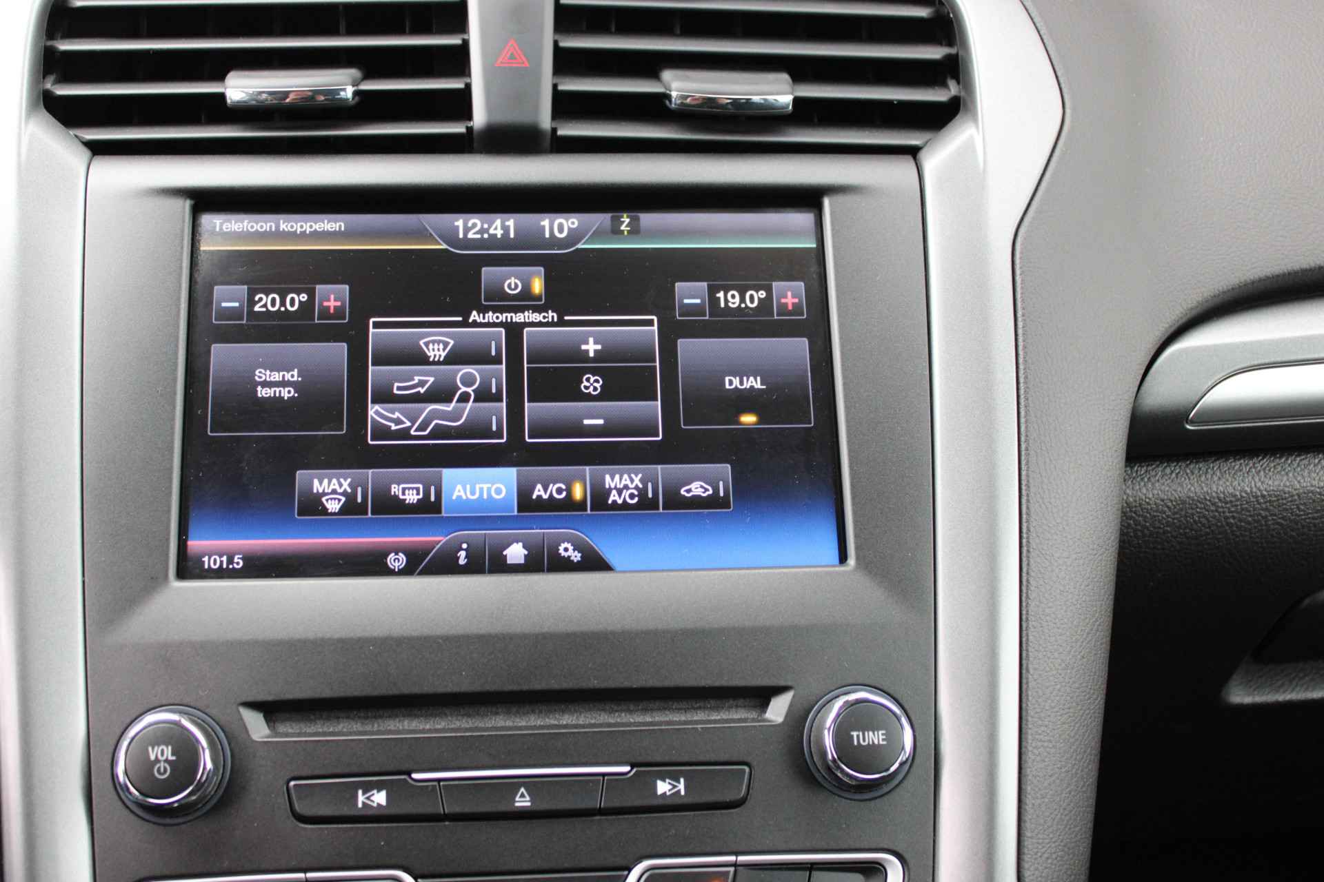 De bediening van het audiosysteem en het full map navigatiesysteem gebeurt met knoppen op het stuur en als u wilt zelfs met uw stem. De audio is overigens voorzien van DAB-radio voor een altijd heldere ontvangst. Het spreekt voor zich dat een auto als deze ook van automatische airconditioning is voorzien. Inparkeren en uitparkeren kost geen enkele moeite dankzij de parkeersensoren. In deze Ford kunt u zich concentreren op het verkeer, terwijl de auto de omgeving voor u in de gaten houdt. Een automatisch inschakelbare verlichting zorgt dat de verlichting aangaat als het donkerder wordt - in tunnels bijvoorbeeld - en de regensensor schakelt de ruitenwissers in als het nodig is. U hoeft er niets aan te doen. De cruise control heeft een feilloos geheugen. Als u even vaart heeft geminderd, bent u na één klik weer op de oude snelheid. De uitrusting van deze Ford is met keyless entry, automatisch dimmende binnenspiegel, lederen stuur, isofix-aansluiting, toerenteller en bagage afdekhoes behoorlijk compleet.