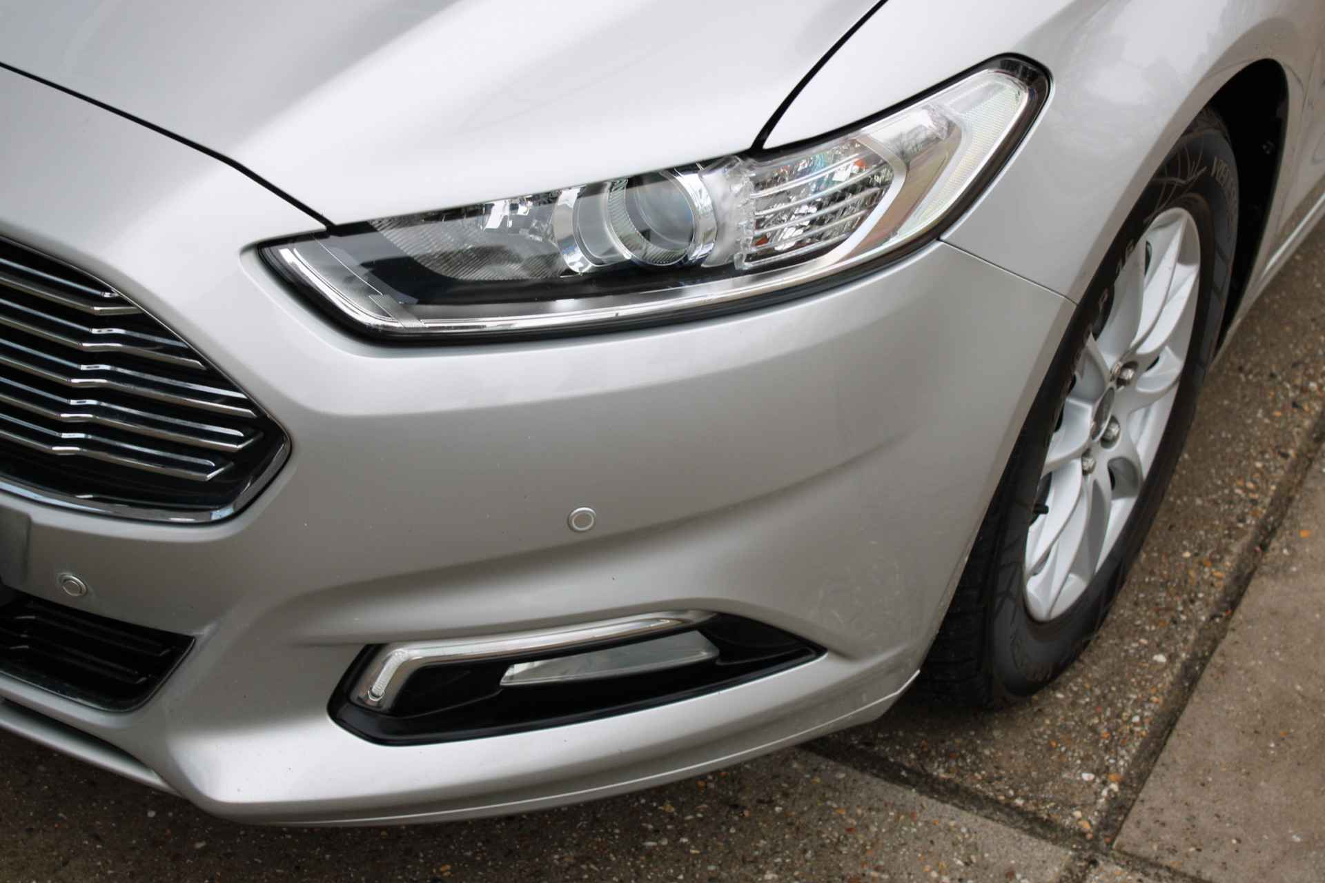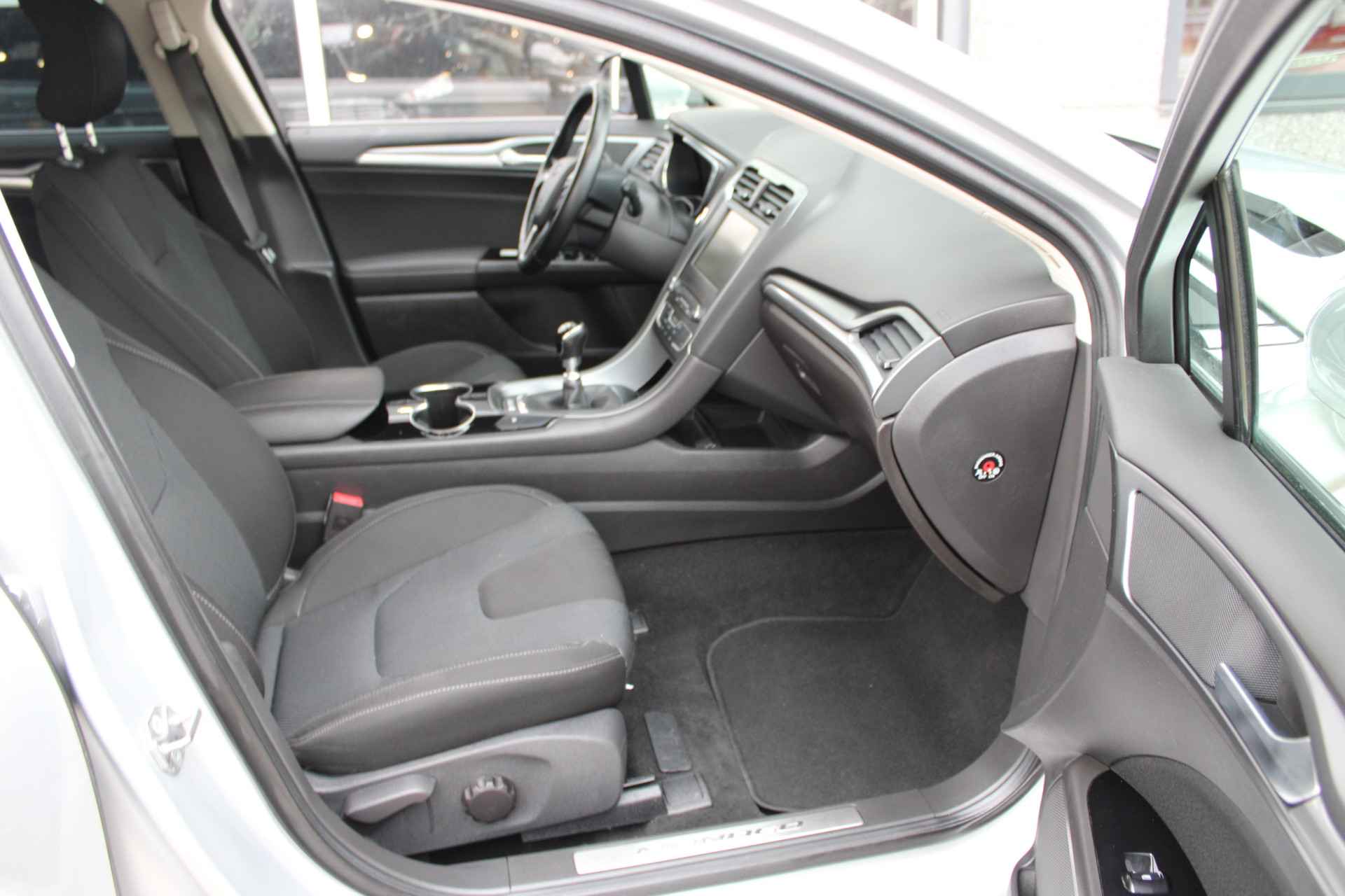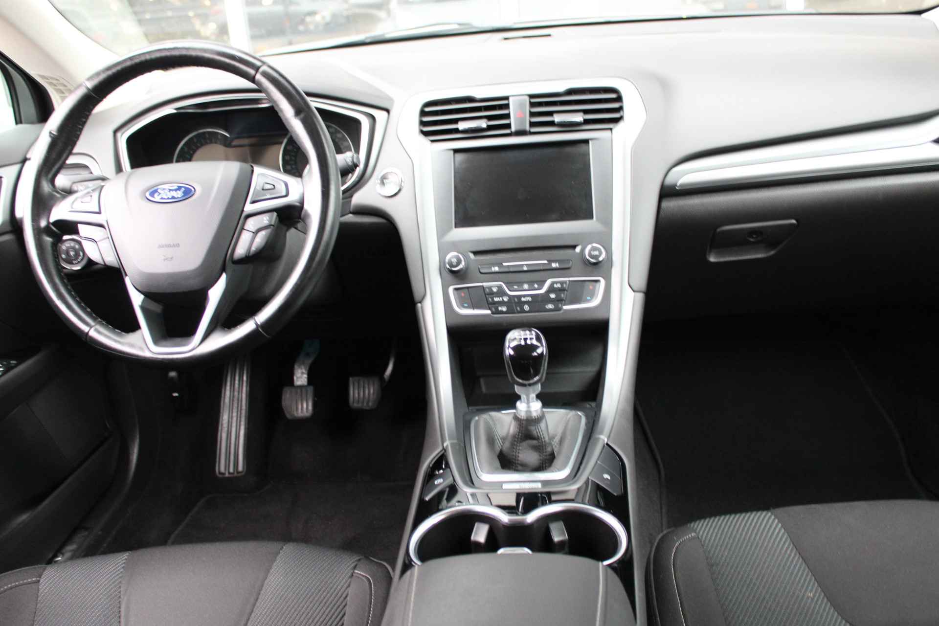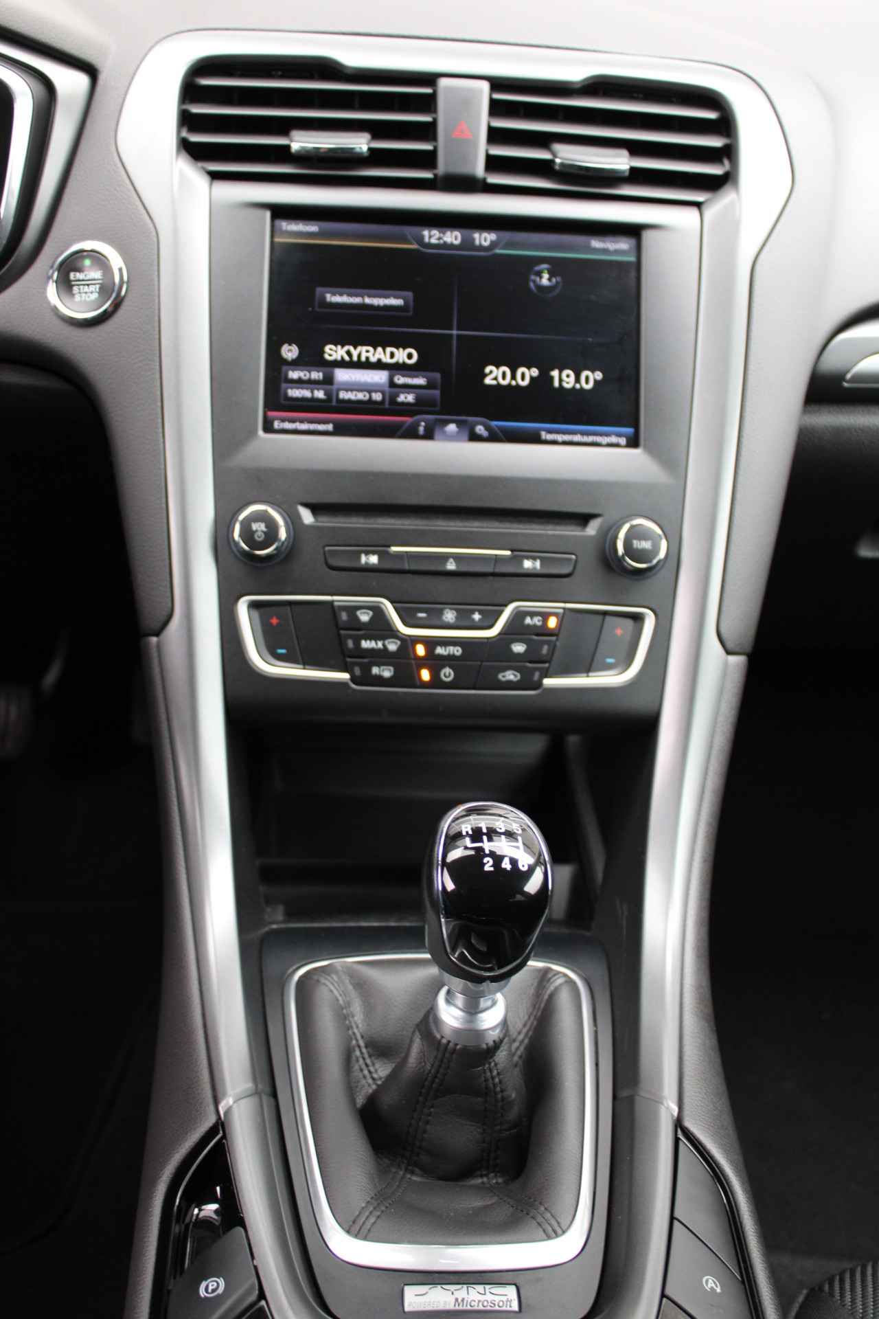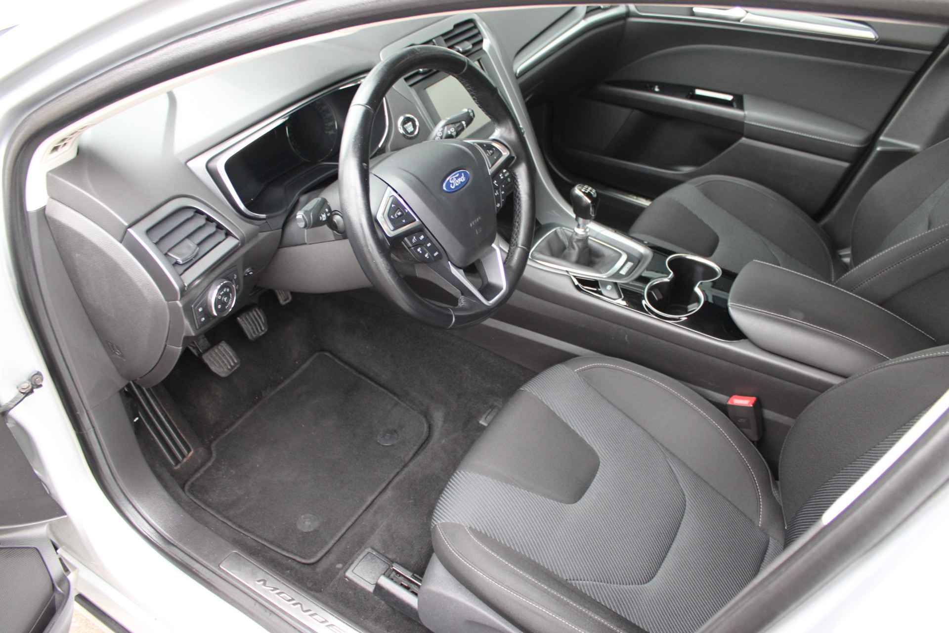 De bediening van het audiosysteem en het full map navigatiesysteem gebeurt met knoppen op het stuur en als u wilt zelfs met uw stem. De audio is overigens voorzien van DAB-radio voor een altijd heldere ontvangst. Het spreekt voor zich dat een auto als deze ook van automatische airconditioning is voorzien. Inparkeren en uitparkeren kost geen enkele moeite dankzij de parkeersensoren. In deze Ford kunt u zich concentreren op het verkeer, terwijl de auto de omgeving voor u in de gaten houdt. Een automatisch inschakelbare verlichting zorgt dat de verlichting aangaat als het donkerder wordt - in tunnels bijvoorbeeld - en de regensensor schakelt de ruitenwissers in als het nodig is. U hoeft er niets aan te doen. De cruise control heeft een feilloos geheugen. Als u even vaart heeft geminderd, bent u na één klik weer op de oude snelheid. De uitrusting van deze Ford is met keyless entry, automatisch dimmende binnenspiegel, lederen stuur, isofix-aansluiting, toerenteller en bagage afdekhoes behoorlijk compleet.