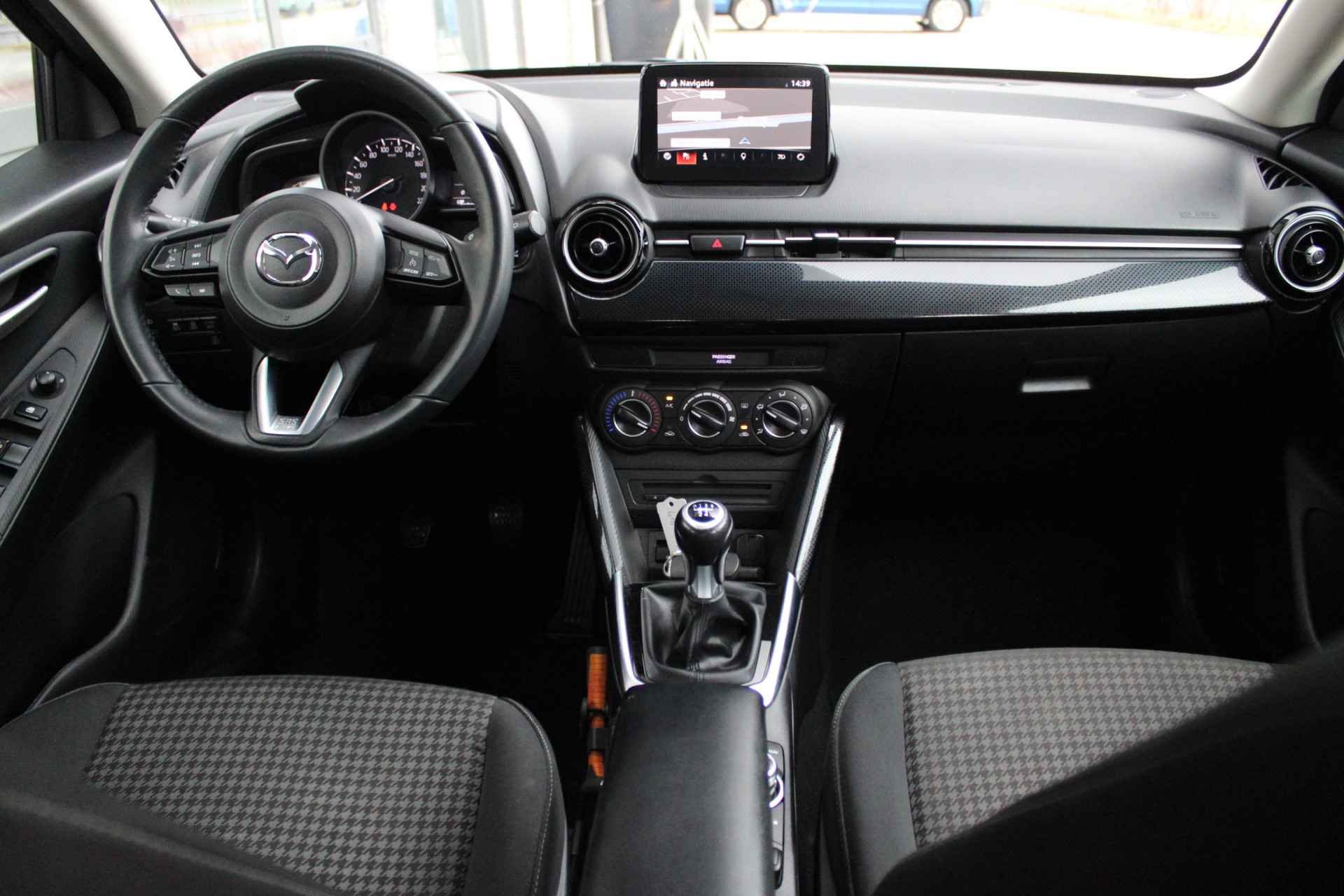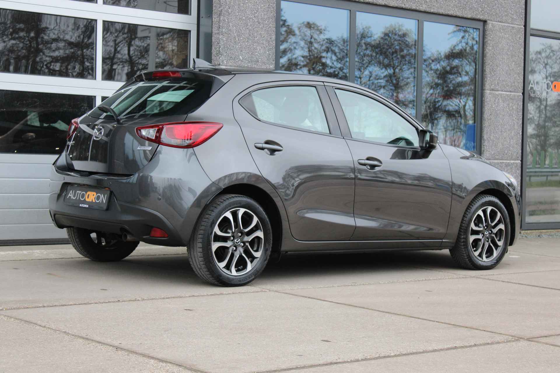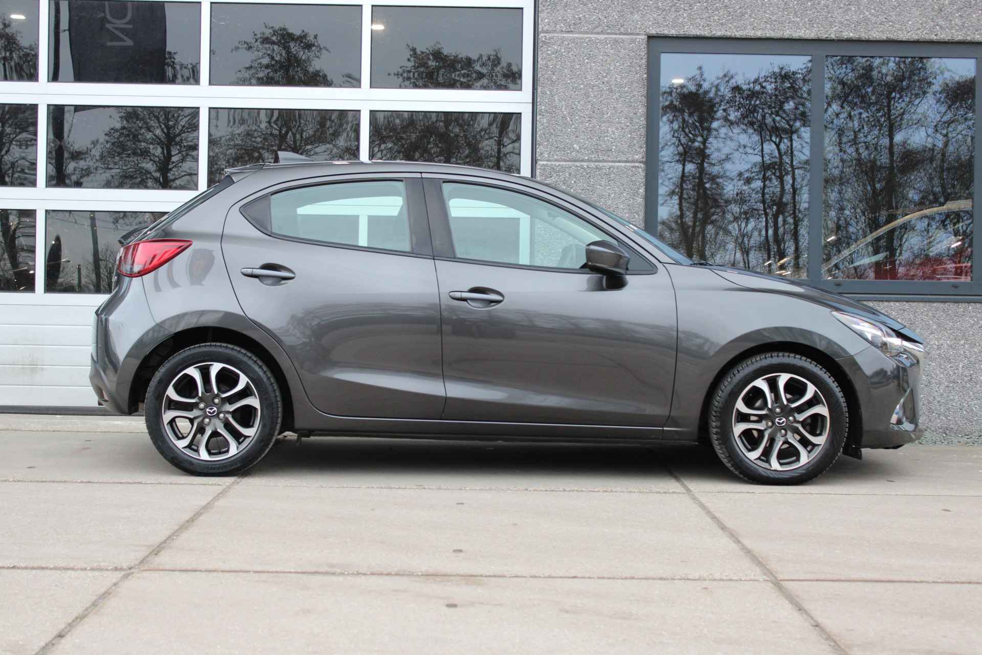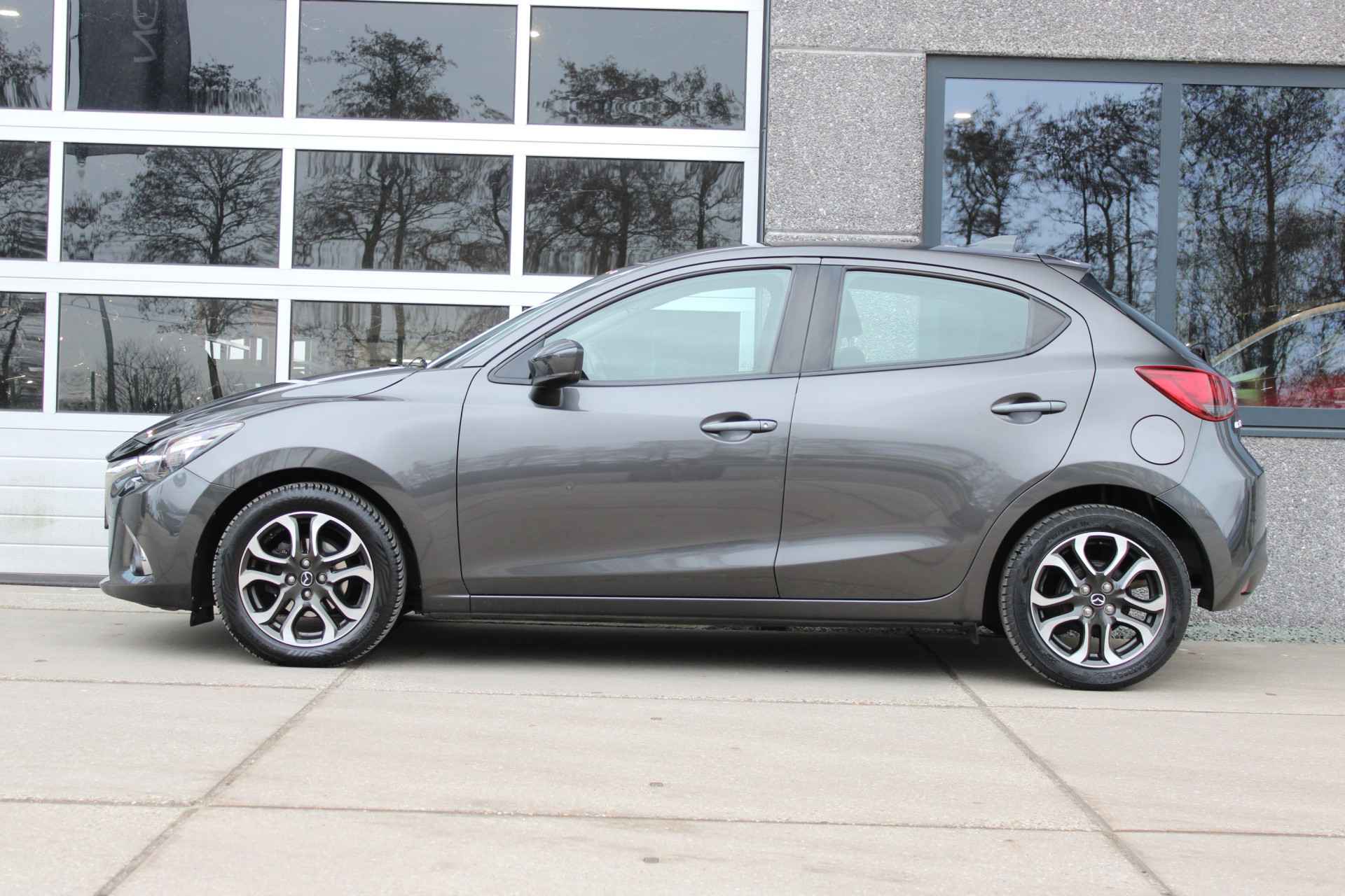 Nette origineel Nederlands geleverde Mazda 2 in de fraaie kleur Machine Grey met oa Apple Carplay & Android auto maar ook een navigatie systeem en All season banden.